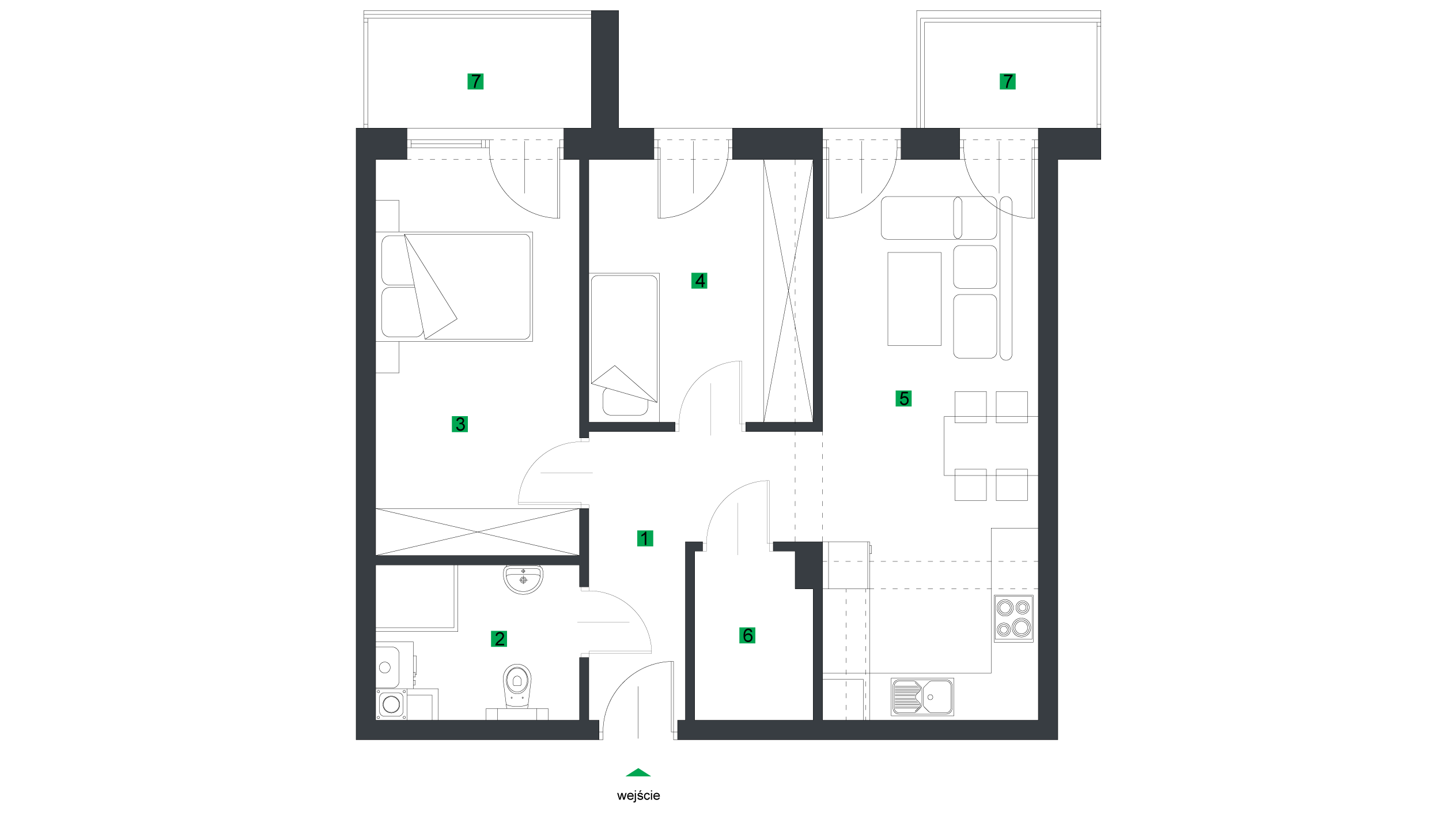 Niniejsza podstrona nie stanowi oferty w rozumieniu przepisów Kodeksu Cywilnego oraz innych właściwych przepisów. Podstrona ma charakter wyłącznie poglądowy i stanowi przykładową wizualizację lokalu użytkowego. Lokale użytkowe nie będą wyposażone w widoczne na rzucie elementy sanitarne, meble, sprzęty AGD.