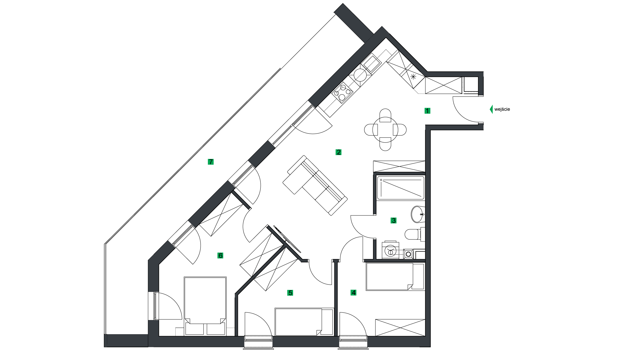 Niniejsza podstrona nie stanowi oferty w rozumieniu przepisów Kodeksu Cywilnego oraz innych właściwych przepisów. Podstrona ma charakter wyłącznie poglądowy i stanowi przykładową wizualizację lokalu użytkowego. Lokale użytkowe nie będą wyposażone w widoczne na rzucie elementy sanitarne, meble, sprzęty AGD.