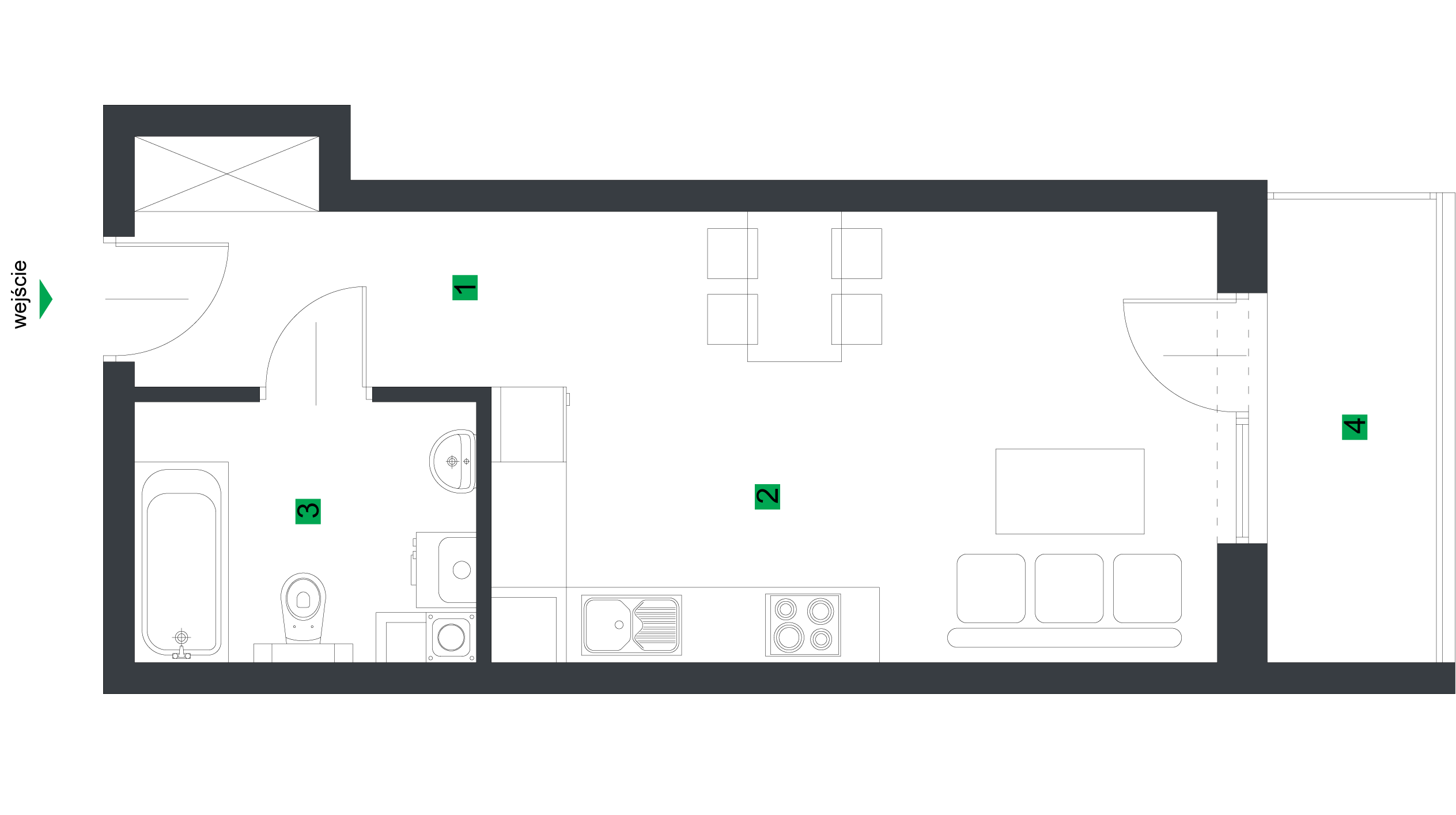 Niniejsza podstrona nie stanowi oferty w rozumieniu przepisów Kodeksu Cywilnego oraz innych właściwych przepisów. Podstrona ma charakter wyłącznie poglądowy i stanowi przykładową wizualizację lokalu użytkowego. Lokale użytkowe nie będą wyposażone w widoczne na rzucie elementy sanitarne, meble, sprzęty AGD.